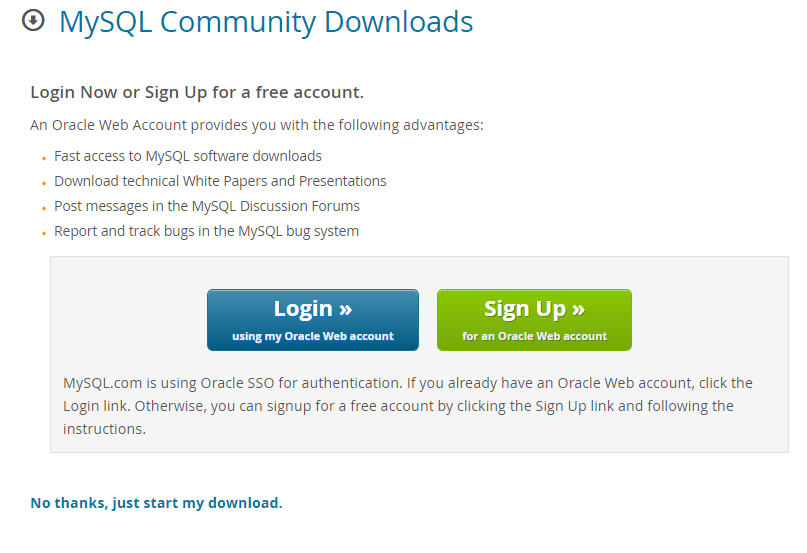 로그인 필요없이 "No thanks, just start my download."를 클릭해서 다운로드 받자.