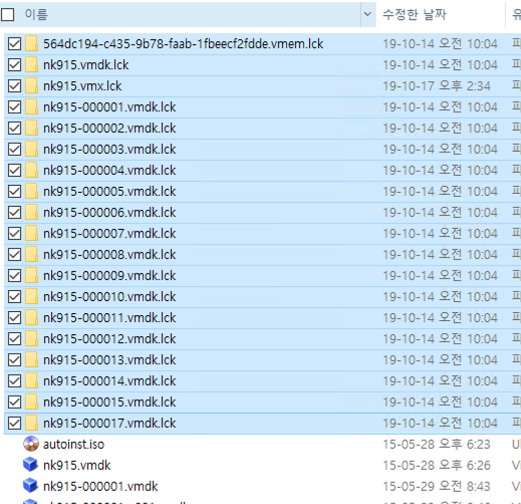 이는 강제 재부팅이나 기타 원격지에서 가상머신을 빈번히 사용하다보면 나오는 증상입니다.