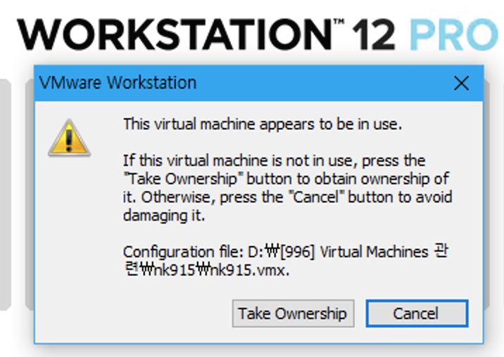 vmware를 원격으로 자주 사용하다보면 가끔 Take Ownership 문구로 우리를 골치 아프게 하는 경우가 나온다.