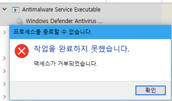 - 원인: 윈도우 디펜더 프로그램의 Antimalware Service Executable 서비스가 메모리 소모를 심하게 함.