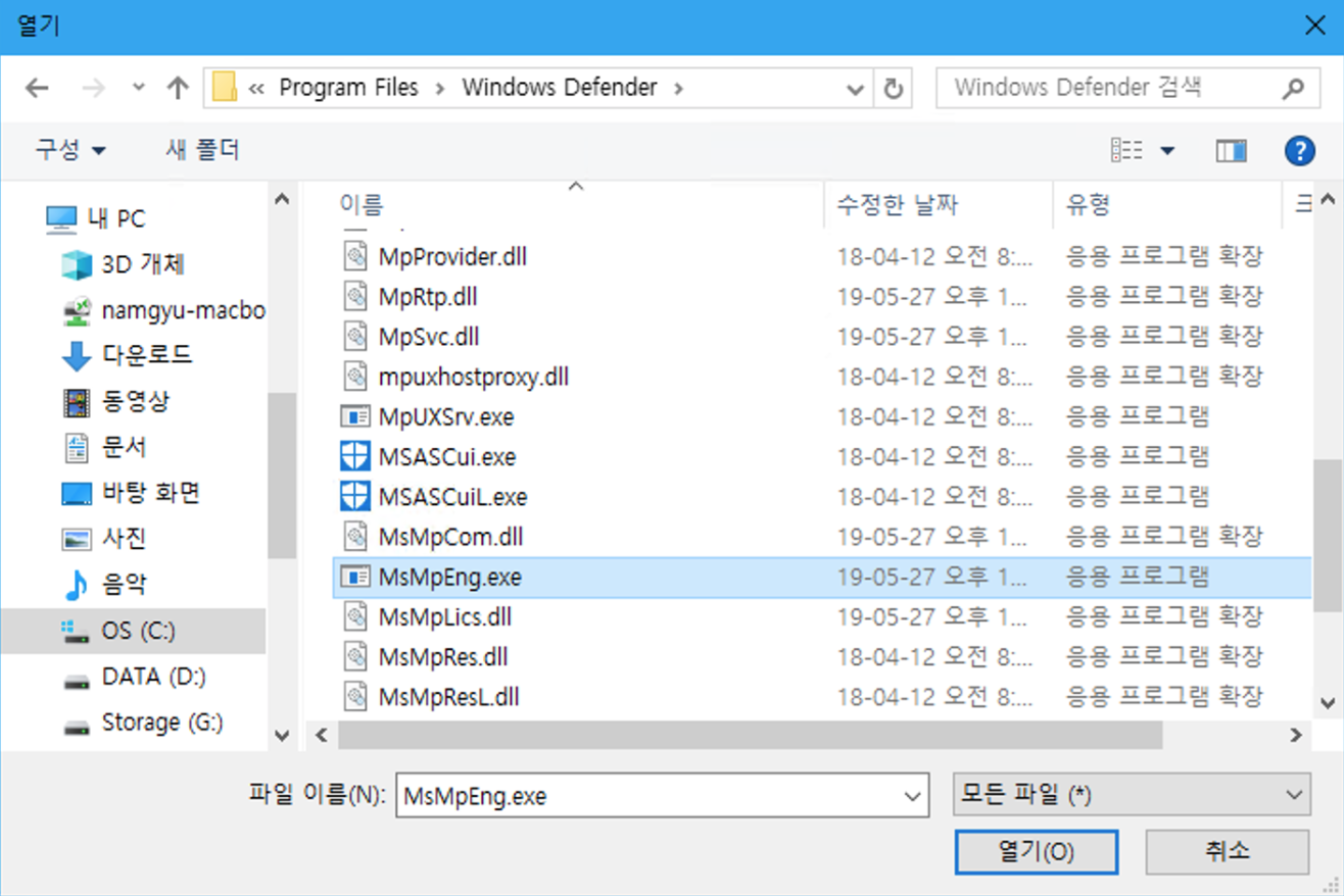 그 녀석이 무엇인고 찾아보니, 윈도우 디펜더에서 사용하는 악성 소프트웨어 (멀웨어)를 검사하다보니 메모리가 높아지고 있더군요..